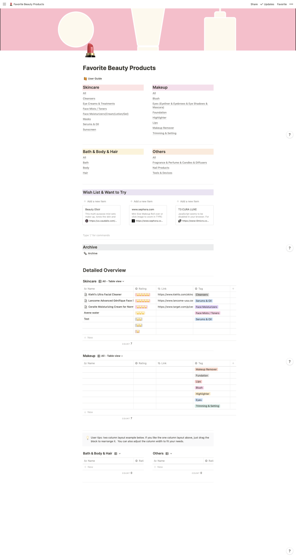Notion Template | Beauty Products Tracker & Manager